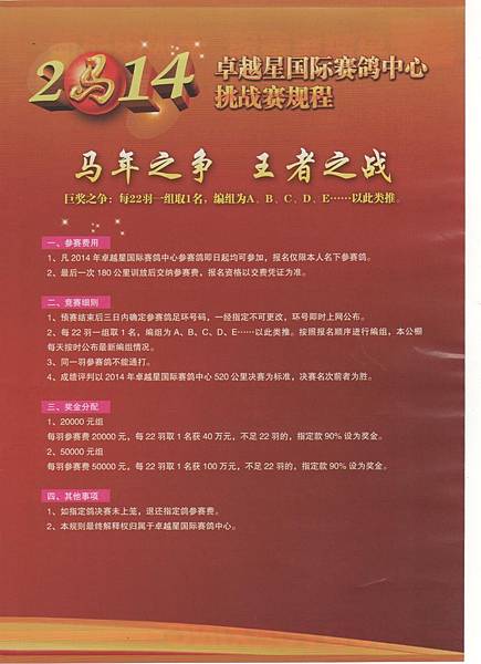 「卓越星國際賽鴿中心」的馬董與北京的凌董原本即為好友,他在知道凌先生委請本人為其舍內種鴿進行汰選及全舍疫苗接種後,同樣也請本人前往卓越星進行各項防疫措施,並聽取本人對各項軟、硬體設施的看法與建議。馬董與凌董在事業經營亦相當成功,加上同樣對賽鴿都有高度興趣,所以兩人的交情非常好。在這種情況下,他們在養鴿的許多觀念便與我方不同,且都有先入為主的觀念。如:他們皆以手感來斷定鴿隻好壞。因此要如何改變他們的觀念? 就是要拿出實力來證明。就像今年2月本人前往凌董鴿舍,從本人與凌董的交談及凌董在不經意所出的測驗題,凌董便深深體會到自己在養鴿方面的觀念仍有進步的空間。