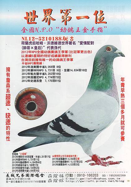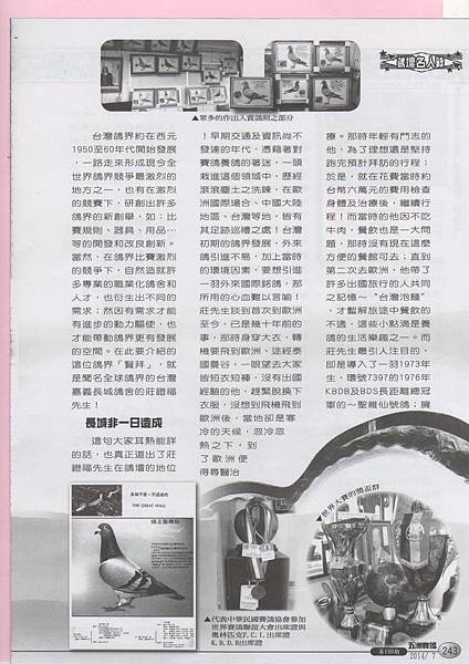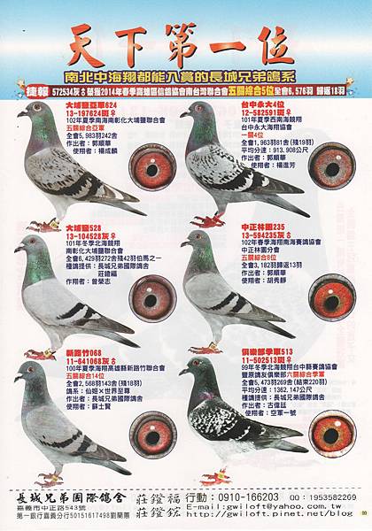 五洲賽鴿 3月份與7月份的雜誌中,均刊有本舍的廣告,此為數年前已支付的廣告費,雜誌社方面希望本舍盡快刊登,且剛好有一些資訊可提供給鴿友,因此才再度刊登廣告。