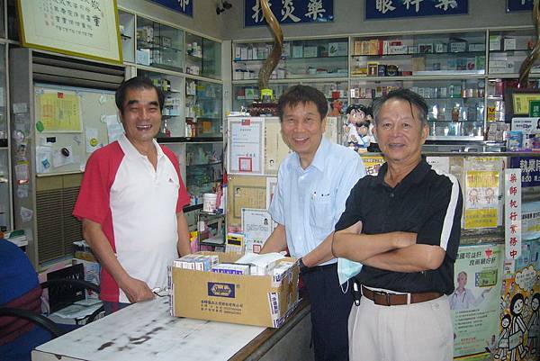 ↑此為松柏藥局,其為嘉義市營業額最佳的藥局。老板陳先生(左) 與蔡先生(中) 、藍先生(右) 皆是同學。