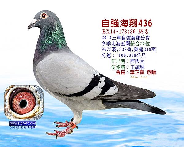 ↑此3羽為 陳律師 去年自強分會的入賞鴿,與今年的入賞鴿皆為相同鴿系。