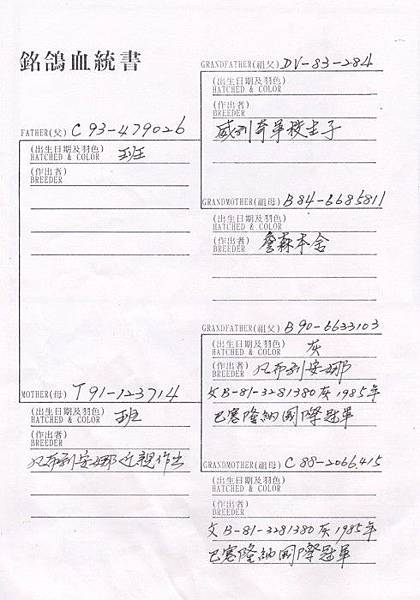 母鴿即為本舍天一紀念號的近親直孫女 084