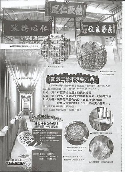 103年高雄大崗山冬季 綜合冠軍 (本舍種鴿提供)