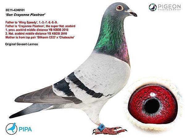 ●父:BE10-4275421“鉛筆灰雄”2010年KBDB全國中距離幼鴿王亞軍. ("閃電號”近親)