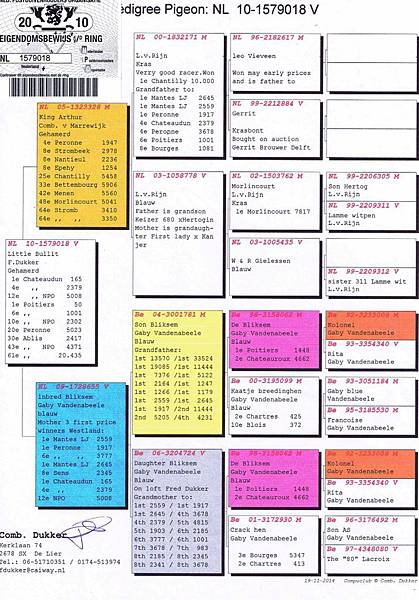 祖父 : “171號”,里歐.范倫的頂尖賽鴿,獲得: