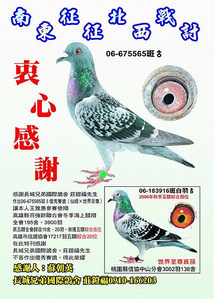 2006年桃園縣信鴿協會中山分會秋季五關綜合8位