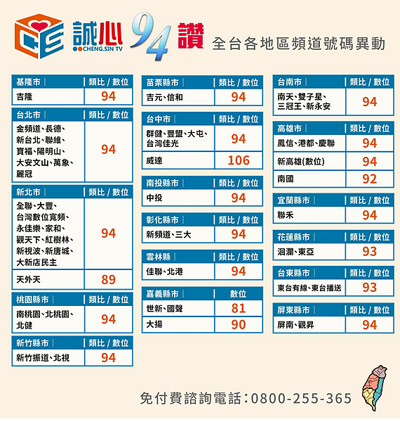 歡迎鴿友於本週六 (9/10) 晚上八點按時收看,鴿友有相關問題可於節目中 call in 。各地區的頻道略有不同,請參照下表。