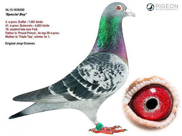 ● 母:NL12-1367017“三冠王”,100%威廉·迪布恩血統神奇雌鴿