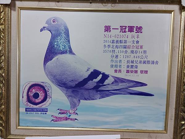 ↑天一女殺手N14-621074 :2014年 嘉義第一支會冬季 綜合冠軍 ,殘14羽,獲利 近百倍。以下介紹其下代