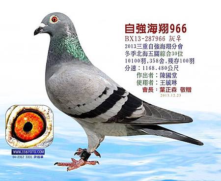 ↑2005年春季嘉義第一支會綜合14位 (天一紀念號之孫) ,此鴿領賞數百大K,而下代鴿總計領逾2千大K。