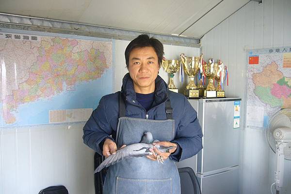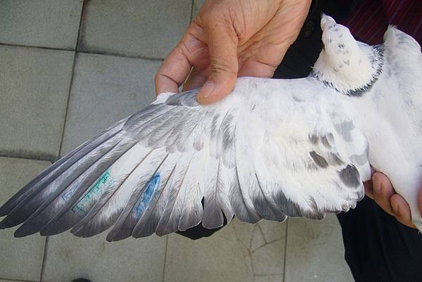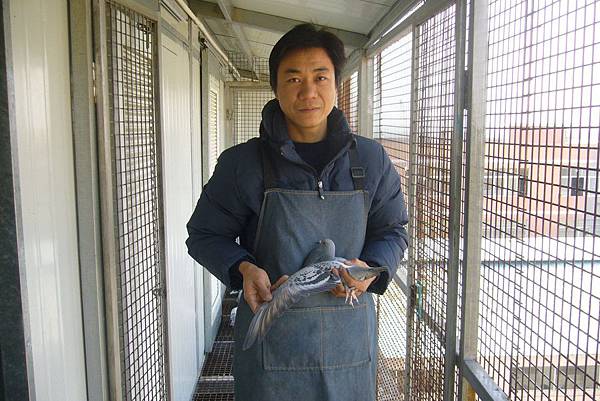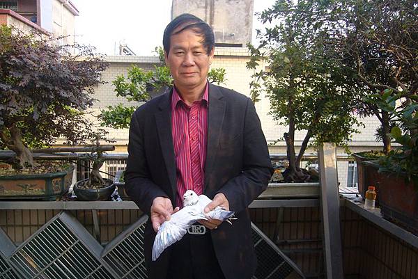 ↑梁先生為本舍鴿系的愛用者,其手持600公里冠軍鴿,血統為本舍黃金灰公(孫) x 大哥大(孫) 。