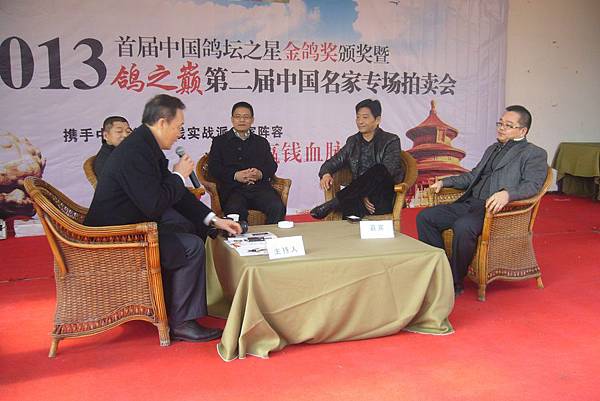 28日拍賣會開幕時,由中國職業賽鴿網的創辦人 – 申延峰先生召開研討會,與多位強豪名家針對賽鴿界的種種現象與問題,進行逐一討論。可惜未能有多餘的時間給現場鴿友提問。