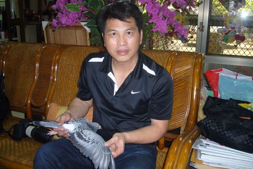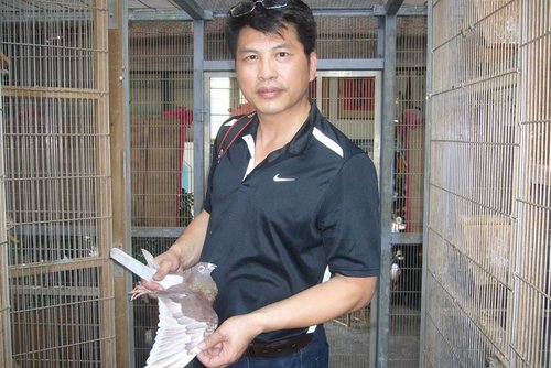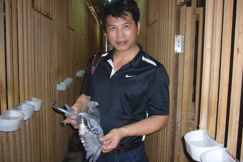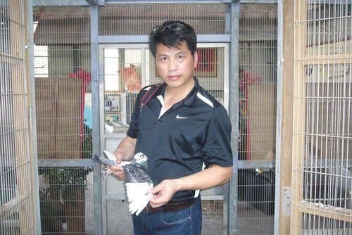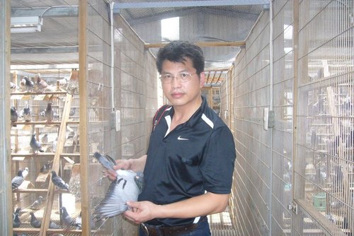 ↑冠軍 張博士手持 貝吉拉克仙鳥,即本格上篇所介紹NL00-5009811。本鴿為荷蘭貝吉拉克近五萬羽選手總冠軍,飛行里程約1000公里,分速高達1800公尺。而且其同父異母姊鴿獲得了亞軍。