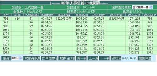 在今年1/1時,本格文章寫到吾人好友 丁先生 參加北海冬季 台北三重 自強分會,獲得了綜合亞軍殊榮。 丁 先生以本舍所提供之八八風災義賣鴿搭配其自有鴿系,始獲得綜合亞軍,並特地來函感謝。在此PO上入賞鴿照暨各關成績。另好友陳律師於同會亦入賞綜合44位。
