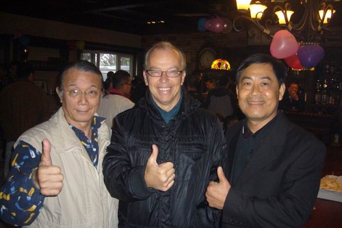 利肯斯 (右)、黑馬鴿舍 陳清調 (中) 與本人 攝於 大陸 北京