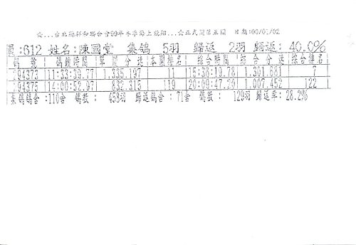 母子二代均作出優秀入賞鴿,這是運氣? 還是實力? 鴿友間常聽到的話就是:鴿子是飛那滴血! 這句話真是一點都不假.! 以往 “世界至尊” 這柱鴿的專長是在春季的賽事,不分南、北海都有優異的表現。現在連夏季與冬季也開始展露實力。當然這與配對有關,也就是如何將不同鴿系的優點融合,使其達到青出於藍而勝於藍。
