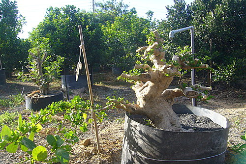 董先生的二哥去了一趟大陸進行考察,目的是有關庭園樹展覽之事。台灣不論在農業或是盆栽這方面的技術是遠遠勝過大陸,尤其是 “接枝” 的部份。舉例來說,一棵庭園樹可能主幹很漂亮,但枝葉卻枯萎或長得不美觀,這時候就需要有專業技術來進行修剪,再進行 “接枝” 的工作。一棵從野外取回的庭園樹,從整理、培養到能上場參展,至少需要15、6年的時間。
