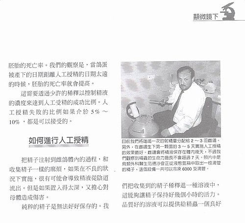 最後,這套方法在技術上完全可行,不過它還需要獲得鴿友們的信心。目前經由人工授精的賽鴿都有不錯的成績,這是個好兆頭。
