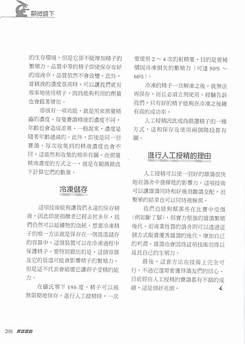 在攝氏零下196度,精子可以被無限期地保存。進行人工授精時,一次要使用2~4次的射精量,目的是要補償因冷凍損失的繁殖力(可達50%~60%)。