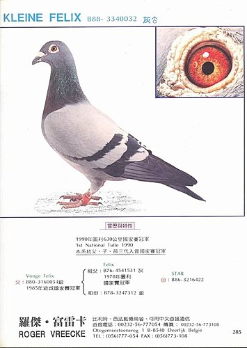 本鴿獲1990年圖利(Tulle) 630公里國家賽冠軍