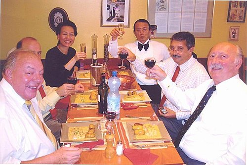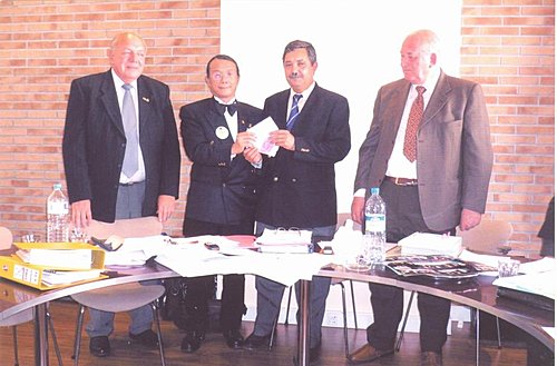 此次理事會現任會長:Félicien VERMEULEN 未克參加,經查問得知 會長因心肌梗塞住院開刀. 莊鐙福 顧問以中華民國賽鴿總會 ( 台灣 ) 名義