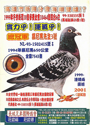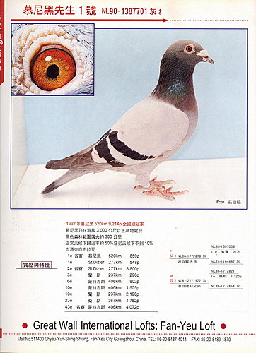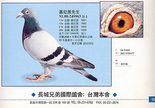 本鴿為1997年前,入賞慕尼黑全國賽最佳母鴿