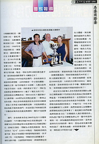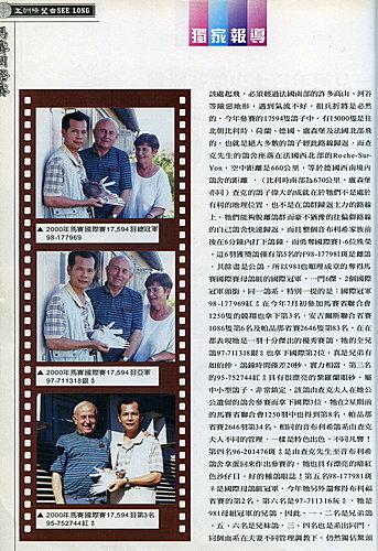 ↑2000年馬賽國際賽17594羽 總冠軍。