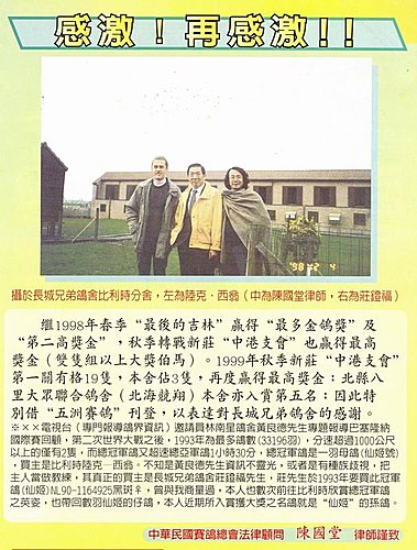 2005比利時K.B.D.B超長距離全國鴿王第3名
