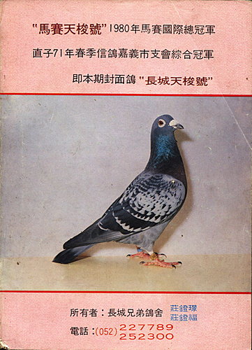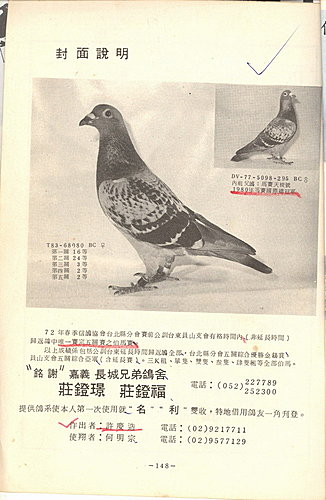 72 年春季信鴿協會台北縣分會賽前公訓台東,員山支會有格時間內(非延長時間)歸返鴿中,唯一賽完五關賽的伯馬賽。