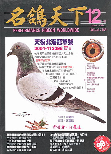 不論是早期的陸翔,或是後來的海翔賽,本舍的 馬賽天梭 鴿系 皆能發揮優勢,並贏得壓倒性的勝利。誰說陸翔鴿就不能飛海翔,本鴿系不但能飛海翔,還贏得全船總冠 軍;長城兄弟國際鴿舍的 馬賽天梭號 就讓你海陸雙贏!