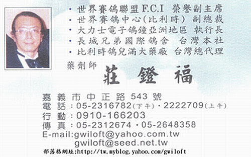 “我不說 你怎麼會知道? ”,為了讓更多人瞭解本舍,本舍將陸續在此公佈舍內的種、賽鴿相關資訊,包含出國參訪及開會的各項訊息。歡迎各位鴿友先進不吝指教!